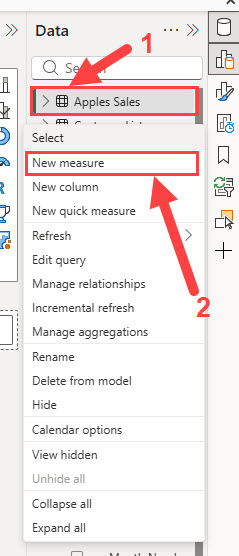First, create a new measure. You can do this in your ribbon, or by left clicking on your query.